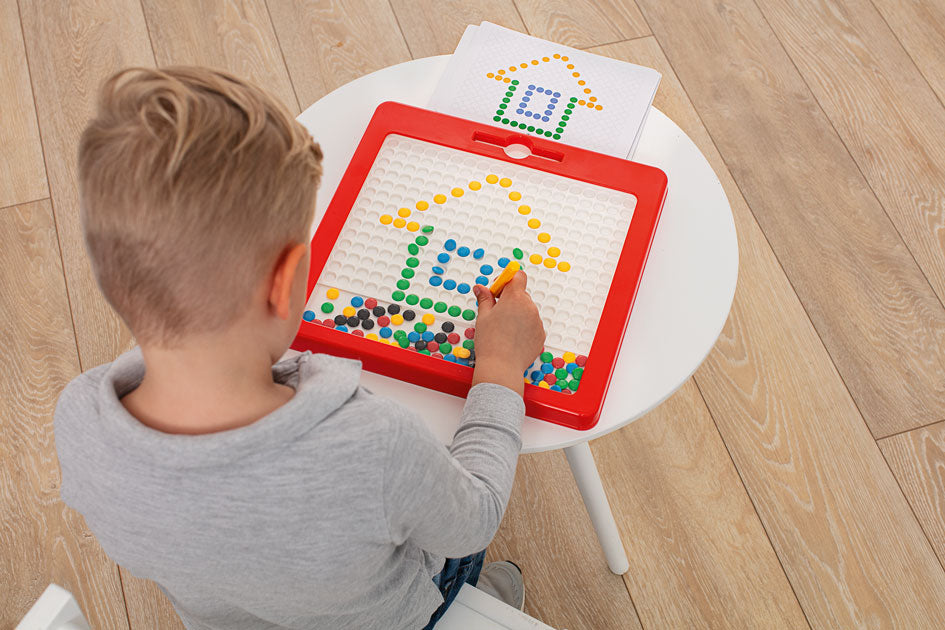 Zeichnen von Formen, Zahlen, Bildern. Fördert die Feinmotorik, Konzentration und sensorische Wahrnehmung. Ab 3 Jahren.