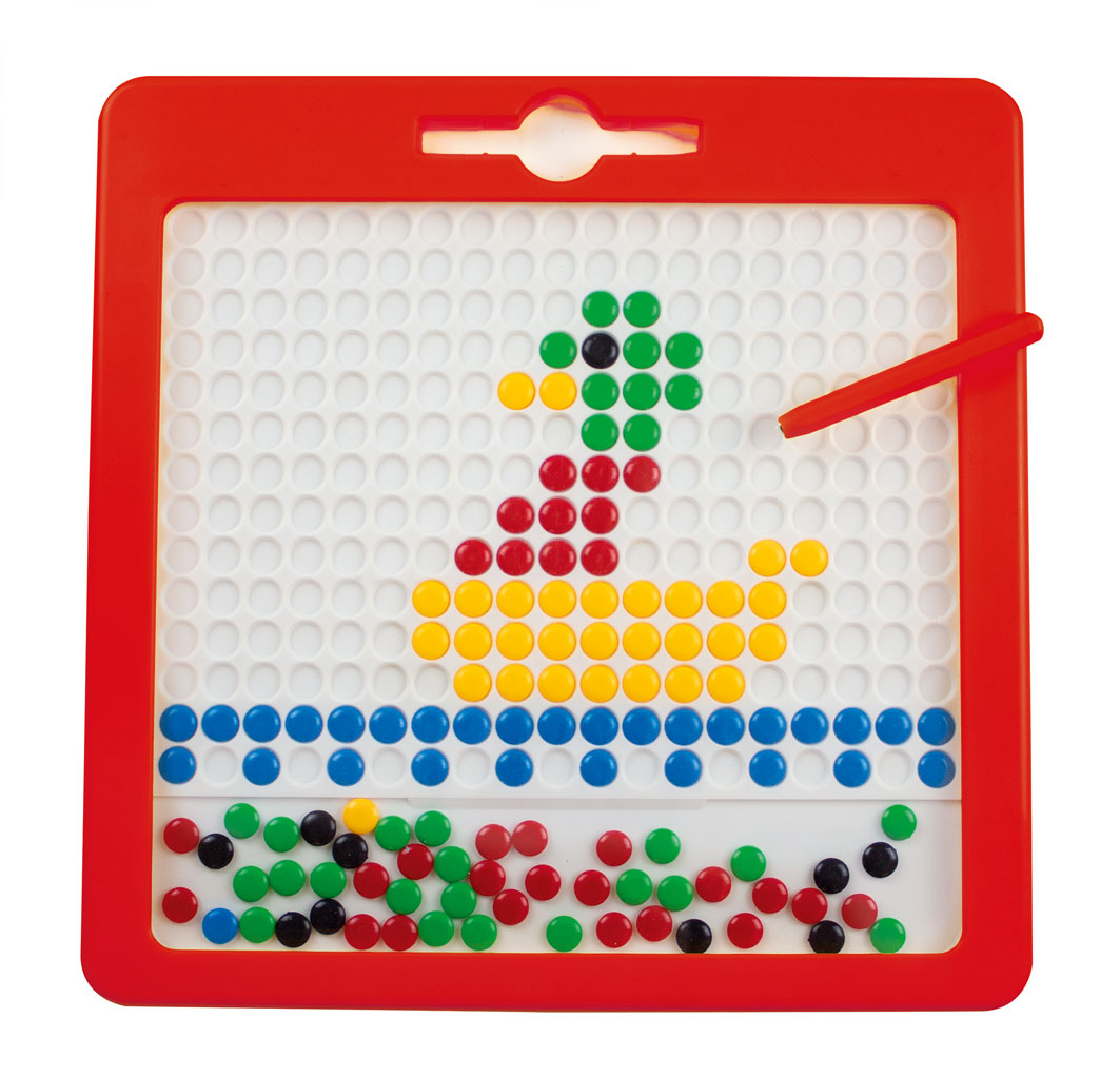 Faszinierende und spannende Bilder entstehen bei diesem Magnetspiel. Mit dem magnetischen Stift zieht man die bunten Plättchen an die Oberfläche. Man kann völlig frei kreieren oder auch die 10 Vorlagekarten benutzen.