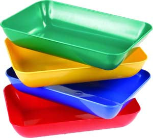 Unsere Materialschalen sind farblich gemischt in den Farben rot, blau, grün, gelb.