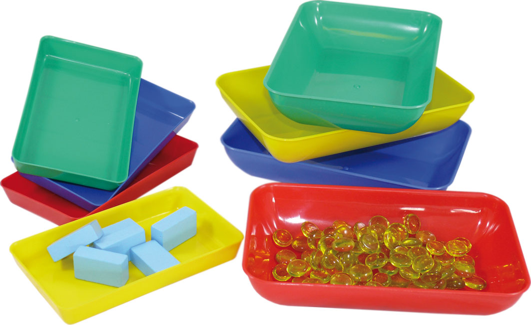 Unsere Materialschalen sind farblich gemischt in den Farben rot, blau, grün, gelb.