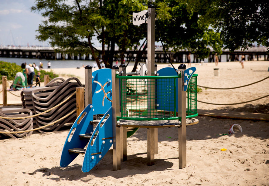 Alles andere als gewöhnlich ist dieser Blickfang auf jedem Spielplatz. Die außergewöhnliche und der maritime Charakter der Spielanlage lädt zum sofortigen Mitspielen ein.