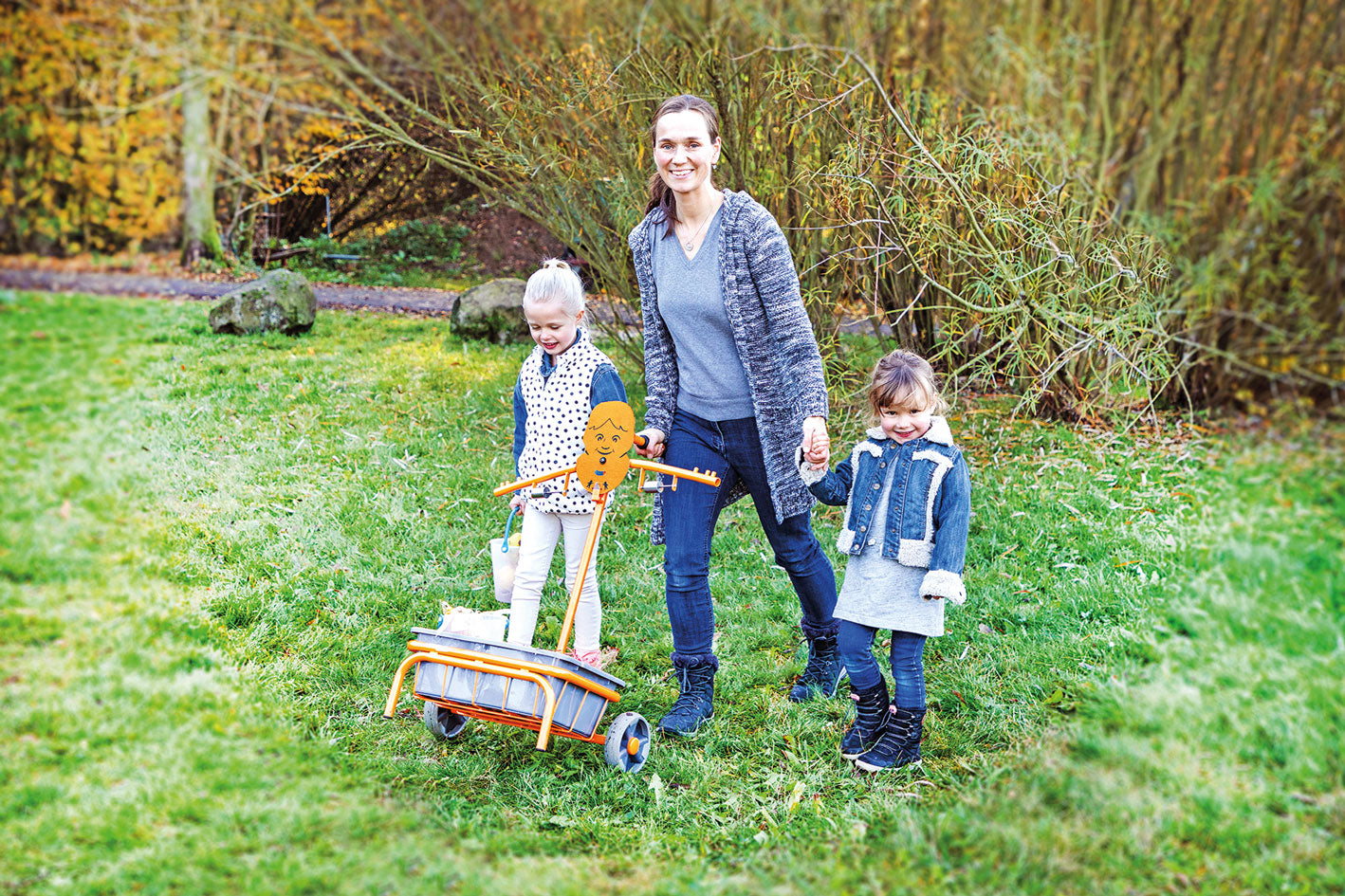 Mit 2 Rädern und Griff für einfaches Transportieren zum Wiegeplatz oder den Schuppen.