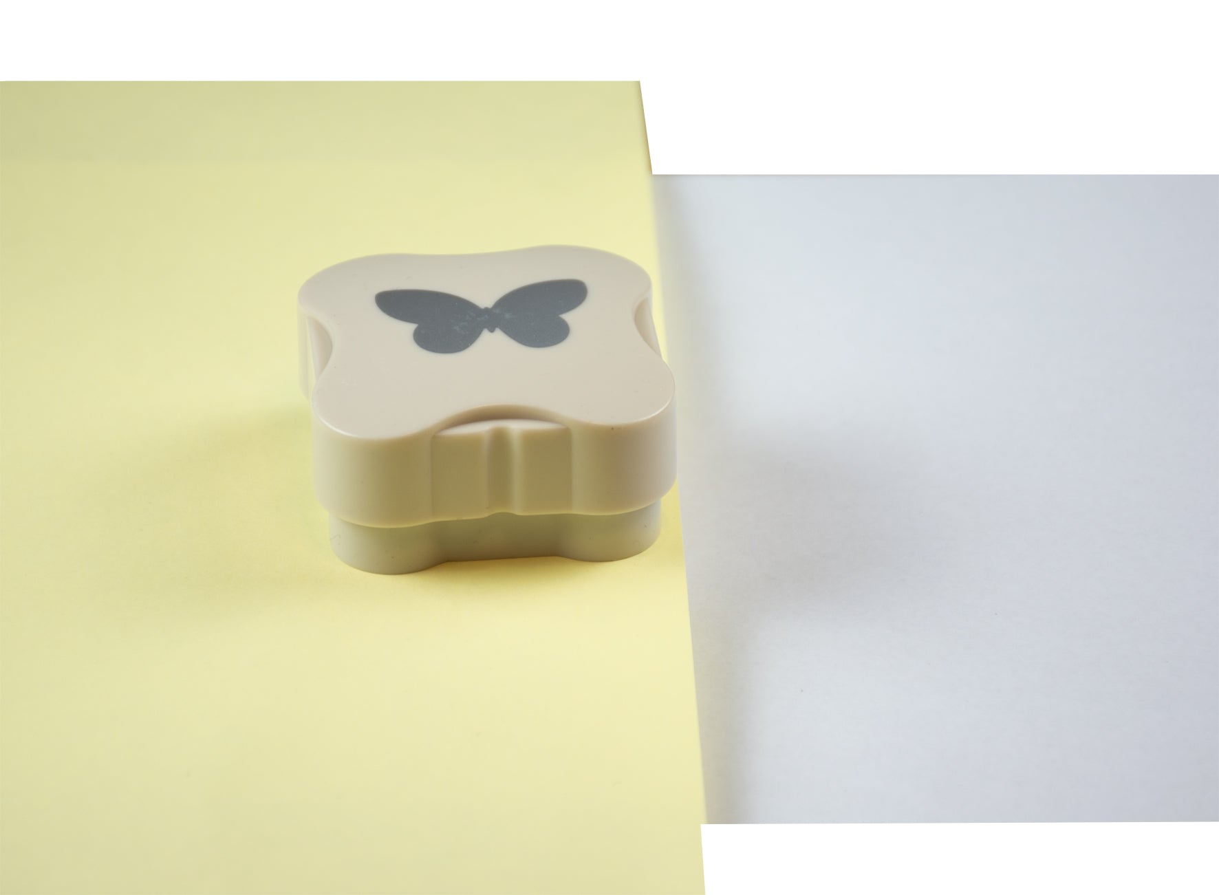 Der Motivstanzer stanzt ca. 3,5 cm große Motive in Papier, Karton, Bastelfolie oder Moosgummi.