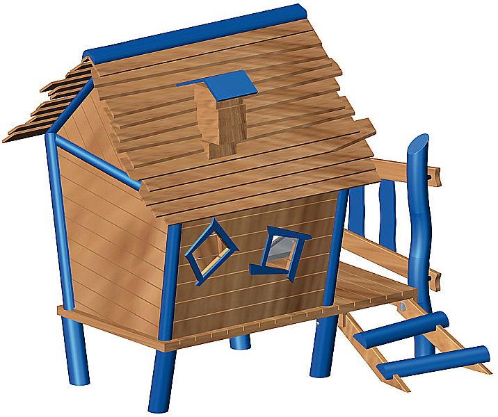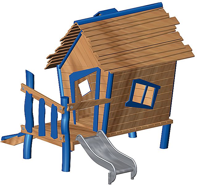 Getestet nach DIN EN 1176 - Außenspielgerätenorm, deshalb hat das Spielhaus auch keine Fenster und Türen zum Öffnen und Schließen. Dieses ist aufgrund der Norm nicht zugelassen.