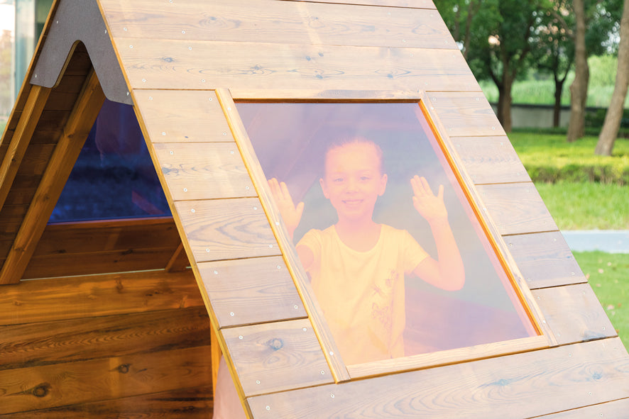 Die Outdoor-Wanderhütte ist ein sicherer Rückzugsort und spannendes Abenteuer-Spielhaus. Gefertigt aus Kiefernholz und mit Holzöl-Wachs-Lasur behandelt, bietet sie Schutz vor Witterung. Bruchsichere, farbige Polycarbonat-Fenster sorgen für Sicherheit und visuelle Effekte. Die Hütte wird teilmontiert geliefert und lässt sich leicht aufbauen.