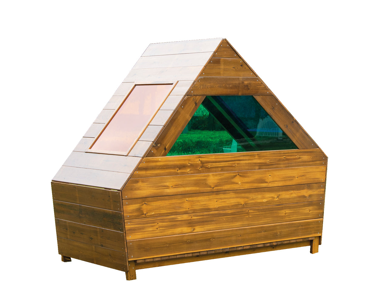 Die Wanderhütte ist ein Erlebnis für alle Sinne. Durch die farbigen Polycarbonat Fenster und das Sonnenlicht entstehen wunderschöne, faszinierende Farb- und Lichtreflexe.