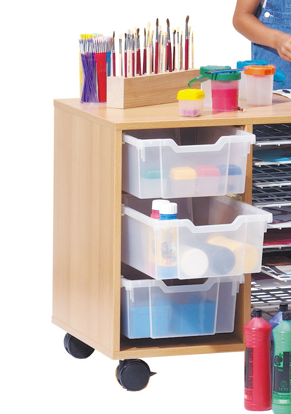 Fahrbarer Bastelwagen für Papier mit 3 hohen ErgoTray Boxen und 10 Fachböden, für Papiermaße bis 50 cm x 70 cm geeignet. Stifte, Pinsel, Farben, oder anderes Zubehör lassen sich problemlos in den ErgoTray Boxen verstauen. Mit diesem vielseitigen Wagen haben Sie immer alles griffbereit, um Ihre Bastelprojekte zu verwirklichen. Egal ob Malutensilien, Kleber oder Papier - der BPW-10LB bietet ausreichend Stauraum für all Ihre Bastelmaterialien. Dank seiner robusten Konstruktion und den leichtgängigen Rollen ist er zudem einfach zu transportieren.