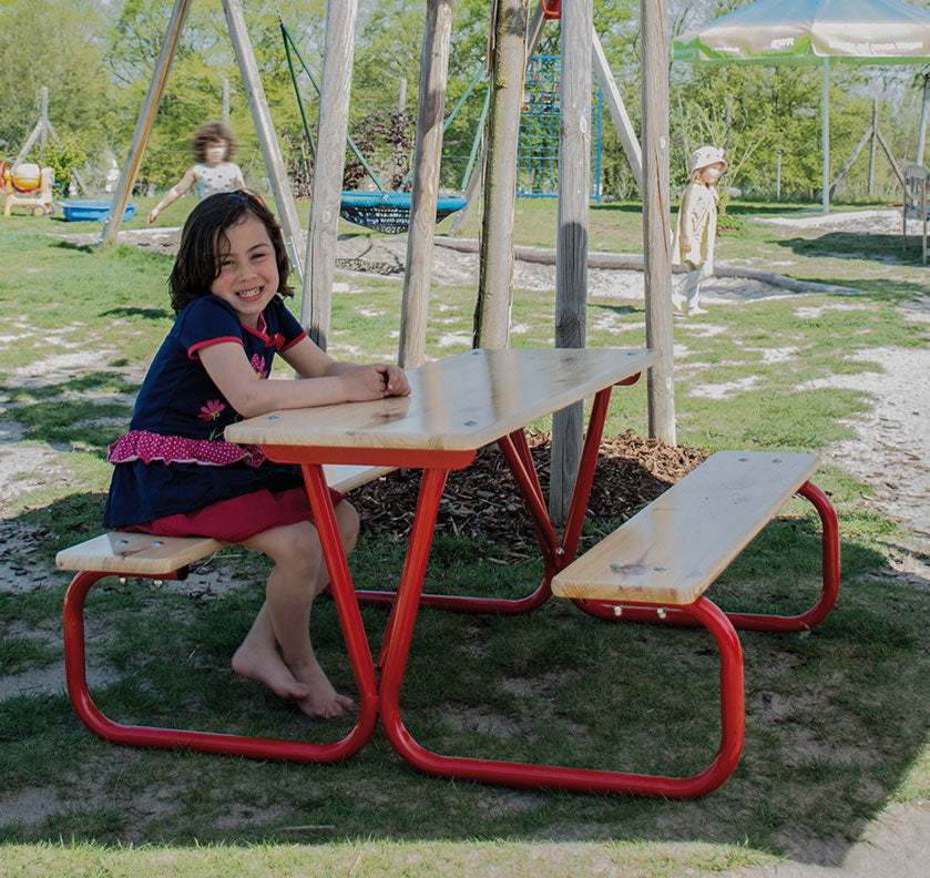 Stabile Kindersitzgruppe bestehend aus einem Tisch und 2 Bänken.