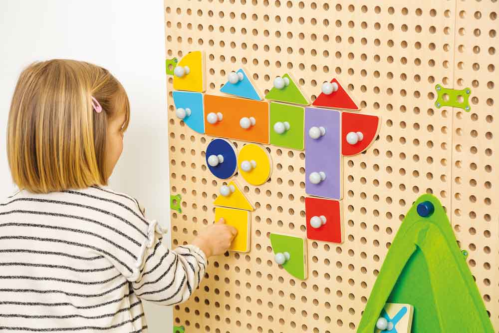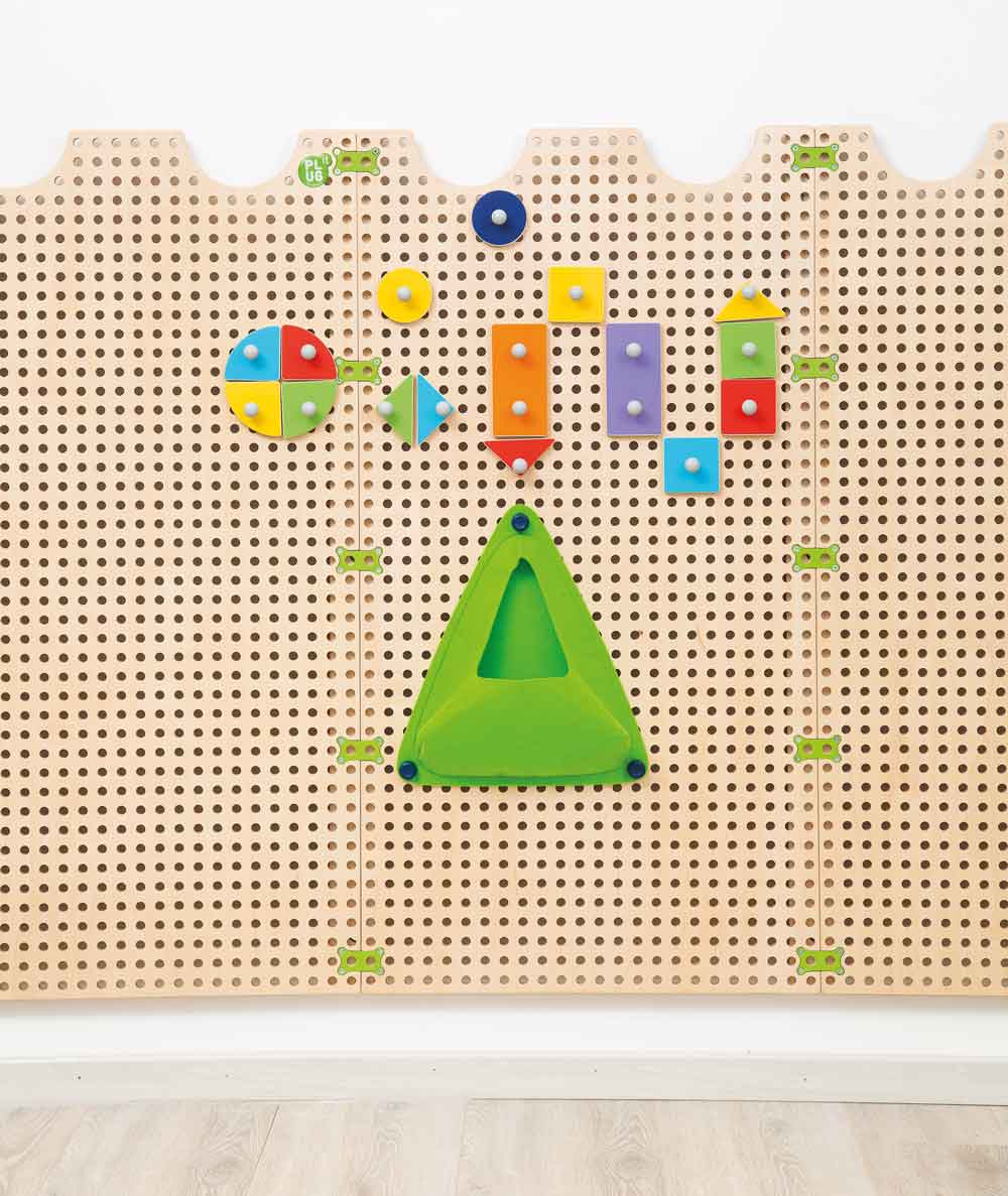 Das Fröbel Set passend zum Wandsystem PLUG it fördert das Erkennen geometrischer Grundformen und unterstützt die Entwicklung mathematischer Fähigkeiten auf kreative Weise.