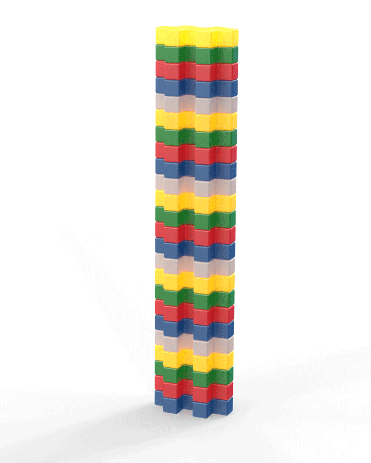 Die Bausteine gibt es in rot, gelb, grün, blau und weiß. Nur eine Steinform um Tiere, Gebäude, Landschaften, Roboter und alles andere zu bauen.