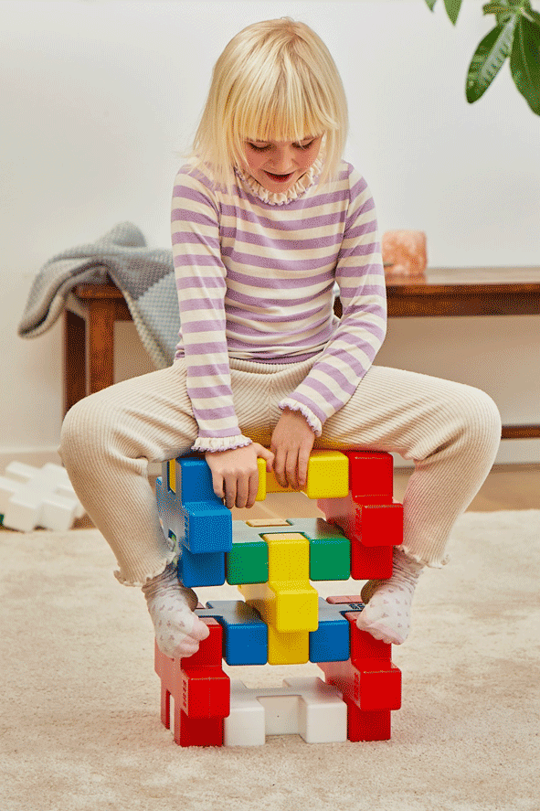 KÆMPE ist ideal für Kindertagesstätten, Vorschulen, Kindergärten und Grundschulen. Ob im Klassenzimmer oder draußen an der frischen Luft, es regt Kinder zum Bewegen, Bauen und Zusammenarbeiten an. Das strapazierfähige Material eignet sich für alle Arten von Oberflächen – von Spielzimmern mit Teppichboden bis hin zu Rasenflächen, Spielplätzen und Turnhallenböden.