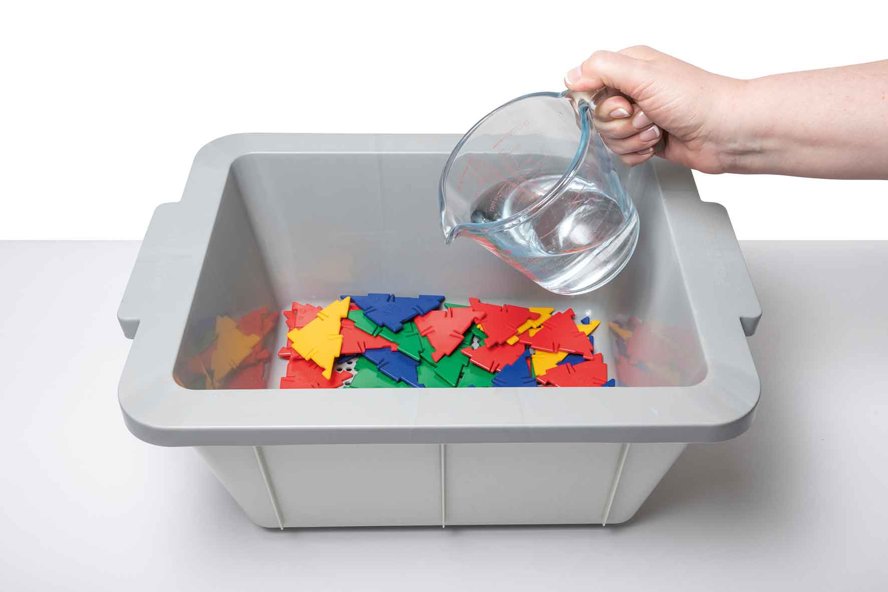 Eine clevere Lösung das Polydron Reinigungssystem, um sicherzustellen, dass Spielzeuge wie Polydron und andere wasserfeste Spielzeuge sauber bleiben.