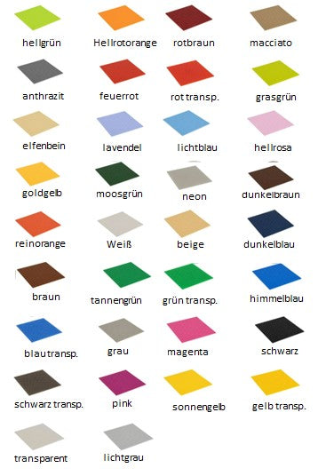 Je Farbe immer 4 Platten, Farben frei wählbar.