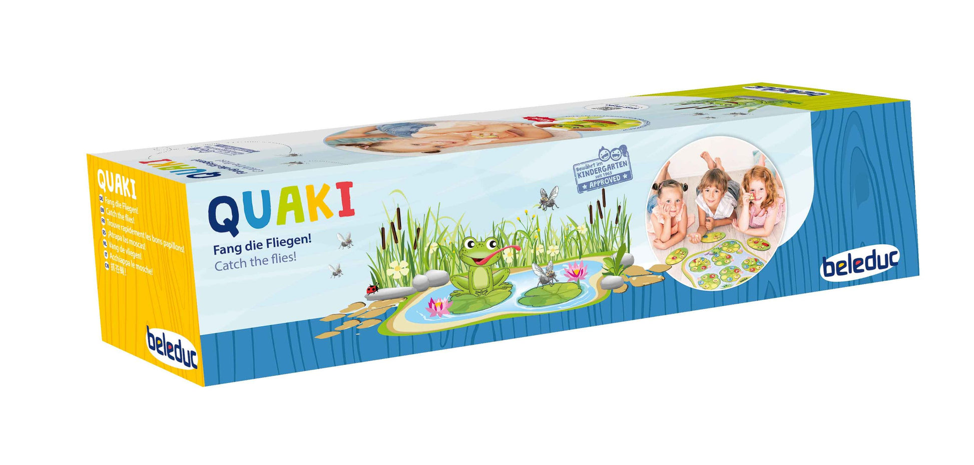 Das Spiel besteht aus einer großen Spielmatte (Kantenlänge 40 cm), 4 Seerosen, 4 Fröschen und 36 Fliegen - wovon 24 magnetisch sind - sowie ein Spielwürfel.