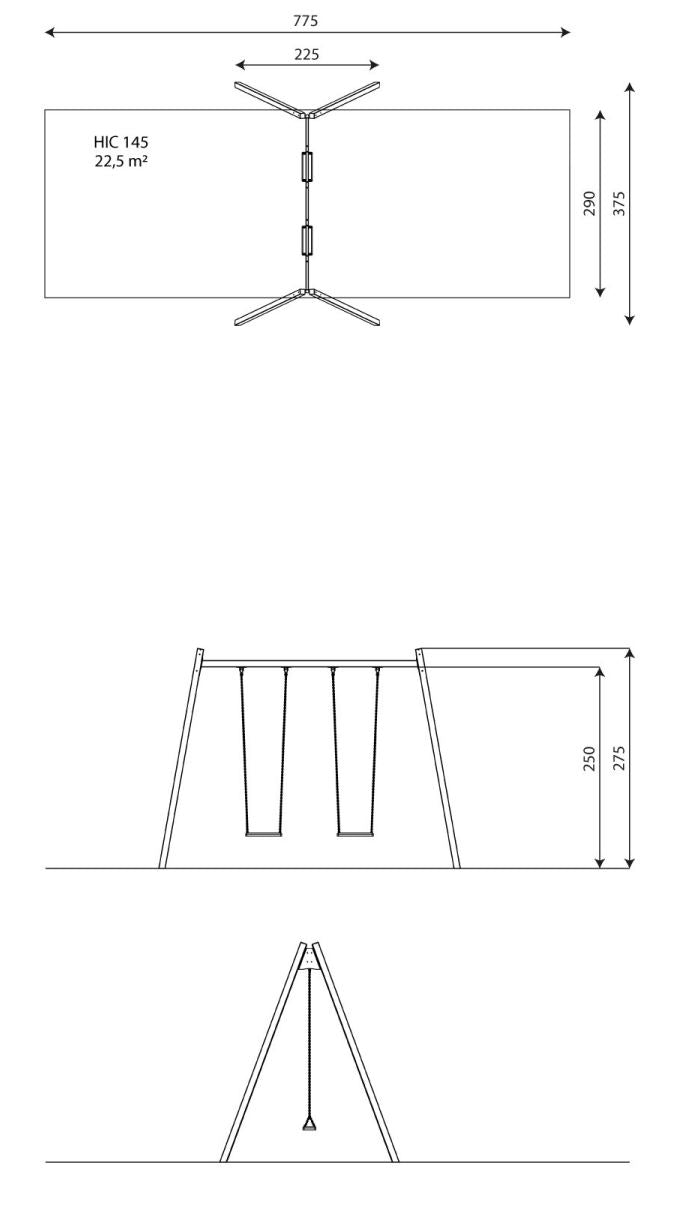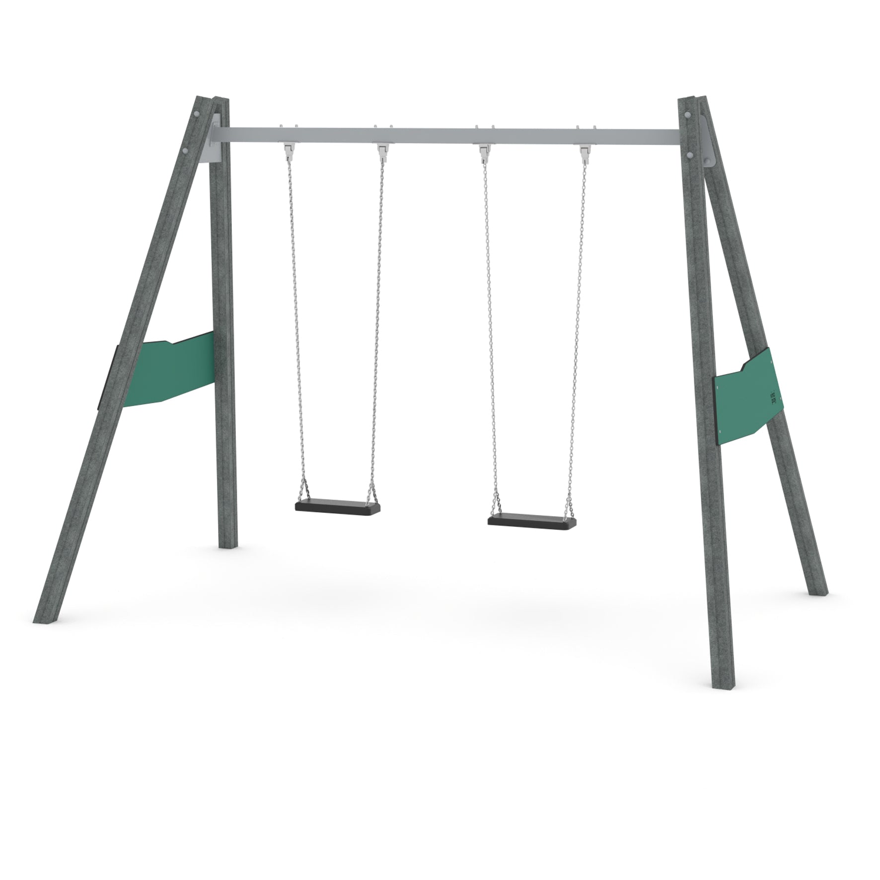 Die Konstruktion ist aus umweltbewussten Recyclingmaterial mit einer Kantenlänge von ca. 9 cm. Geprüfte, sichere Sitze. Die Ketten aus rostfreiem Stahl, die ein Einklemmen der Finger verhindern. Schaukelbeschläge aus rostfreiem Stahl.