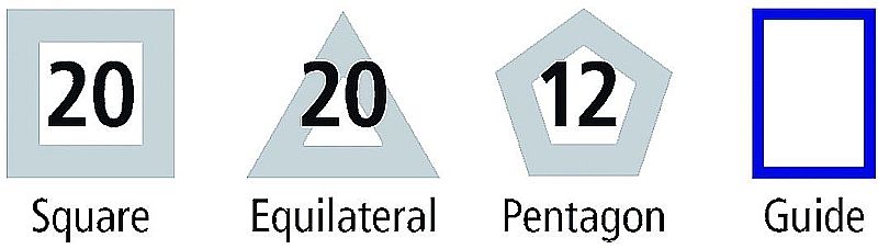 - Inhalt: 20 Quadrate, 20 Dreiecke, 12 Fünfecke