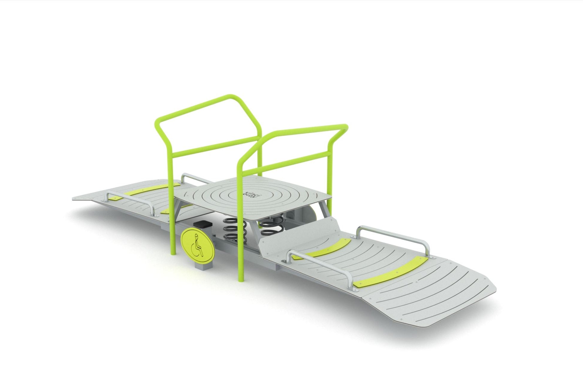 Wippe für 2 Kinder in Rollstühlen. Damit auch Rollstuhlfahrer Spaß haben können.