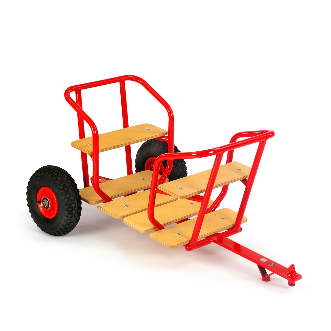 Taxi-Anhänger von ROSE mit Passagierkanzel für zwei Kinder. Zusätzlich verfügt dieses Modell über luftgefüllte Ballonreifen.