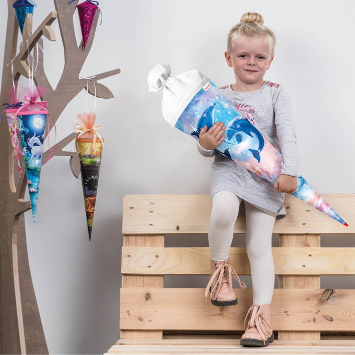 Roth Schultüte Motiv Delfine Glitter rund verstärkte Spitze mit Filzverschluss 70 cm