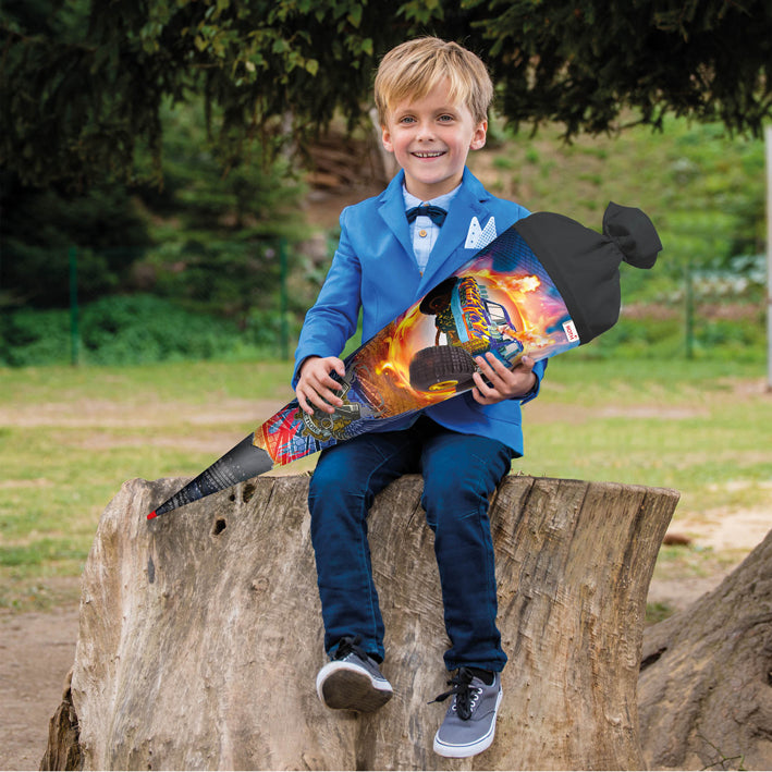 Roth Schultüte Motiv Monstertruck Fire rund verstärkte Spitze mit Filzverschluss 70 cm