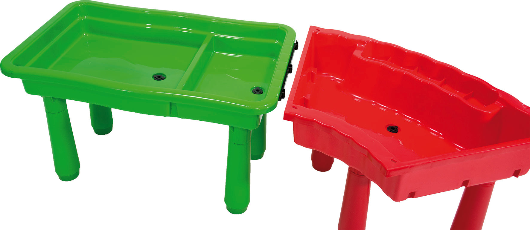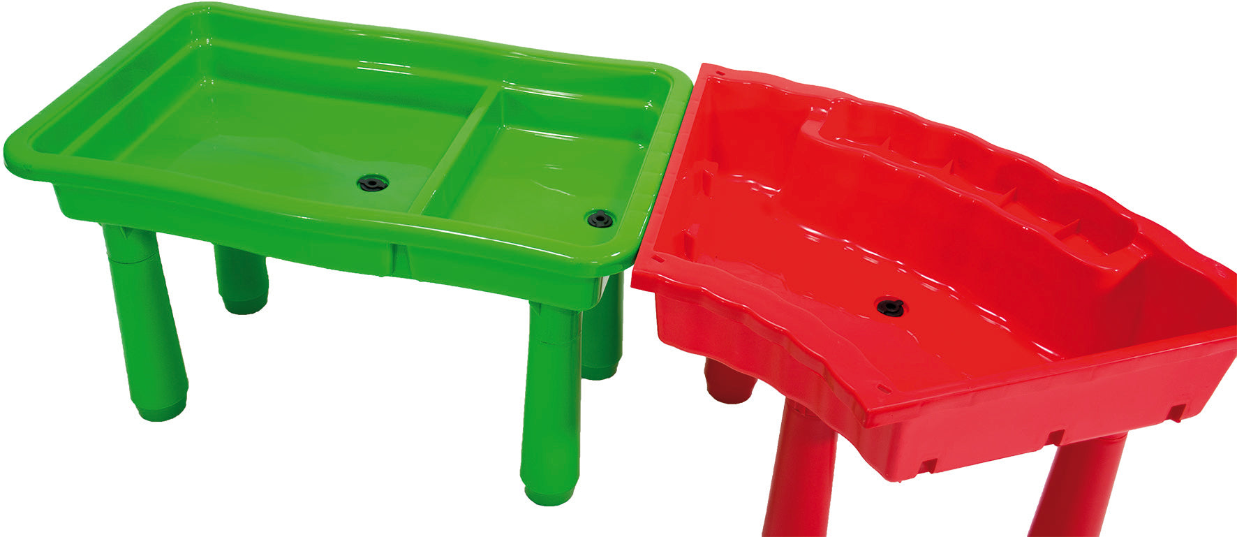 Große Wanne für Wasser und Sand zum Matschen und Spielen. Der Sand-Matschtisch hat einen Abflußstopfen und abgerundete Ecken.