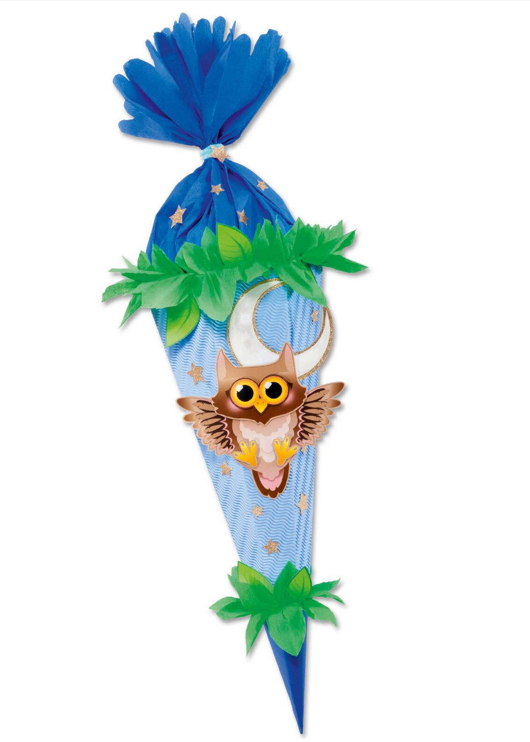 Inhalt: 1 x Schultütenrohling 2 x Rollen Bastelkrepp 1 x Chenilledraht 2 x vorgestanzte Motivbogen 1 x Glitterkarton 1 x 100 Klebepads 1 x Bastelanleitung