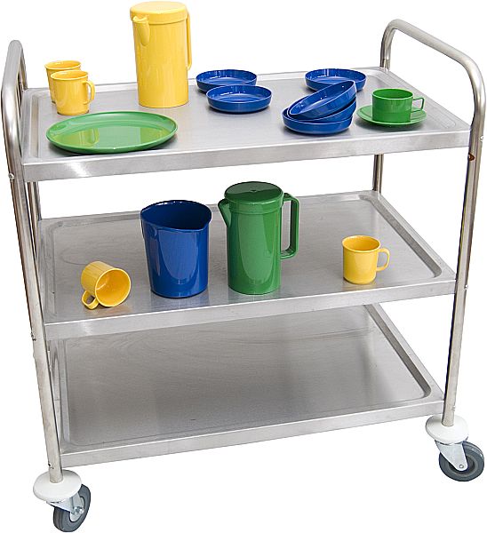 Edelstahlwagen mit 3 festen Böden und einer Vielzahl von Anwendungsmöglichkeiten.