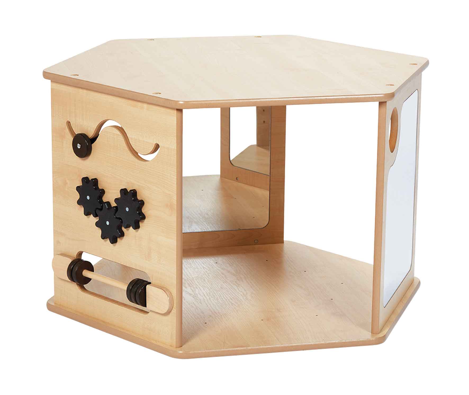 Mit einer Kombination aus Spiegeln und taktilen Oberflächen wird diese Höhle den natürlichen Sinn des Kindes für Neugier anregen und jede frühkindliche Lernumgebung perfekt bereichern. Spiegel und Reflektionen bieten so viele unglaubliche Lernmöglichkeiten, dass wir 6 davon in unsere magische Höhle integriert haben! Die 2 Außenspiegel regen die Kinder dazu an, ihr eigenes Spiegelbild und ihre Mimik zu erforschen, was das Erkennen und die Selbstwahrnehmung fördert. Die 4 Innenspiegel erzeugen faszinierende Reflexionen und sind eine Quelle des Spaßes, der Faszination und der Erkundung. Das taktile Aktivitätspaneel hilft bei der sensorischen Entwicklung und bietet die Möglichkeit, durch Sehen, Hören und Tasten zu erforschen und zu stimulieren.