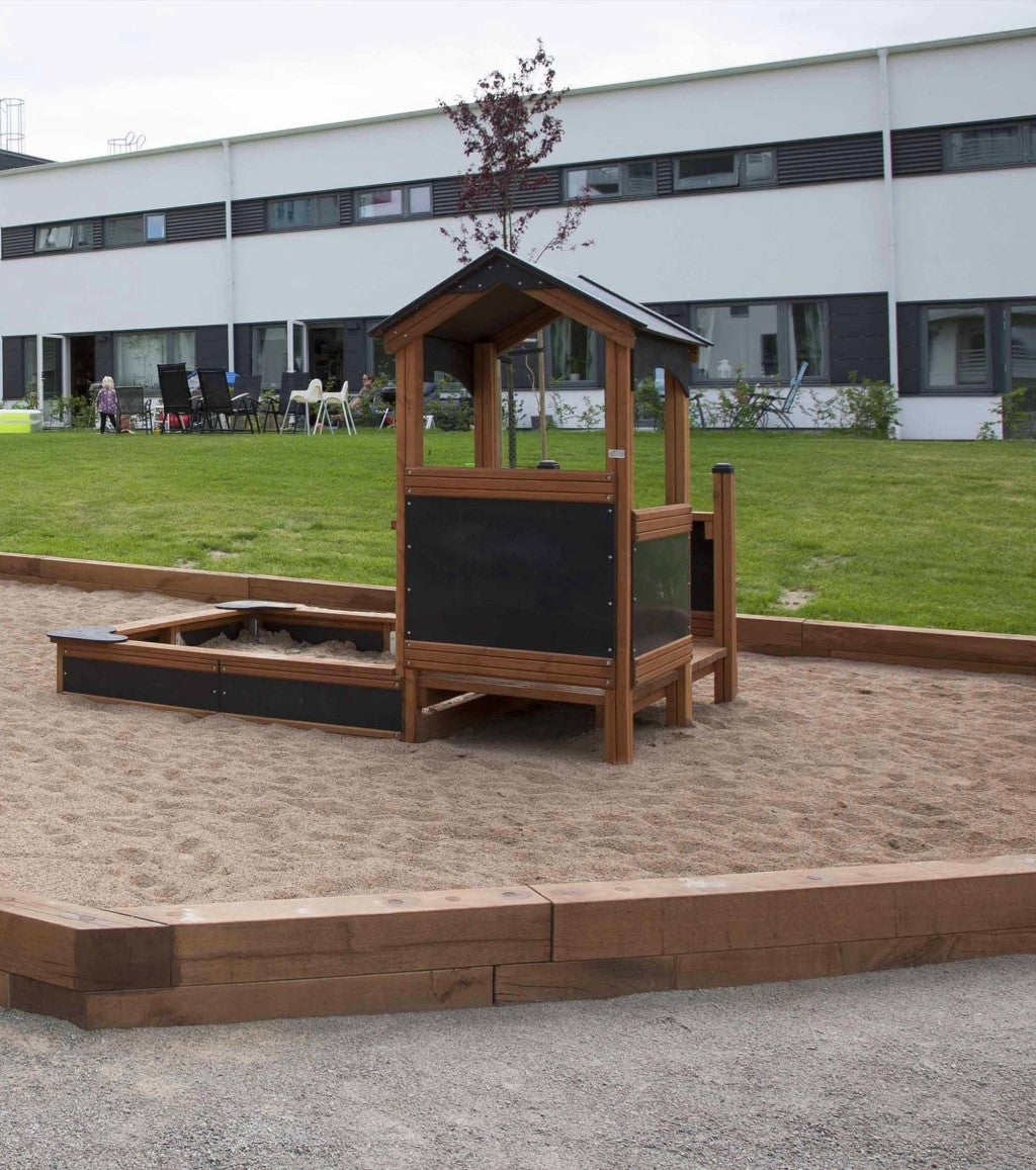 Diese kleine Villa ist ein idealer Spielort für die ganz Kleinen. Am Sandkasten sind bequeme Bänke angebracht, auf die sich sowohl die Kleinen, als auch ihre Eltern zum Ausruhen setzen können.
