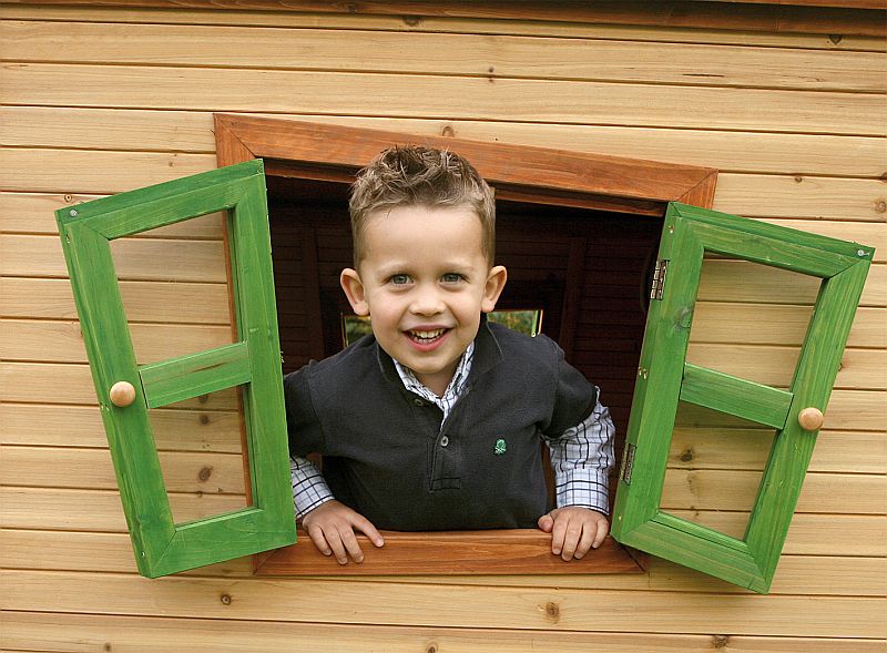- Fertigteile, komplett mit vormontierten Fenstern und Türen, aus 15 mm dicken Zedernholzbrettern, die mit einem 38 mm dicken Rahmen befestigt sind - mit einer umweltschonenden Beize auf Wasserbasis behandelt, dadurch deutlich längere Lebensdauer - Treppen mit flachen Stufen, damit die Kinder bequem und sicher hinaufklettern können - Fenster aus durchsichtigen Kunststoff, gilt als schwer zerbrechlich - TÜV und GS geprüft EN71t - 5 Jahre Garantie auf das Holz