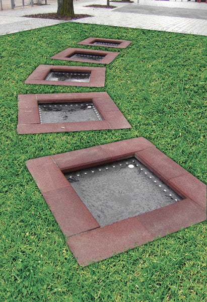 Sprungfläche: geschlossene Gummimatte mit 5 Entwässerungsbohrungen