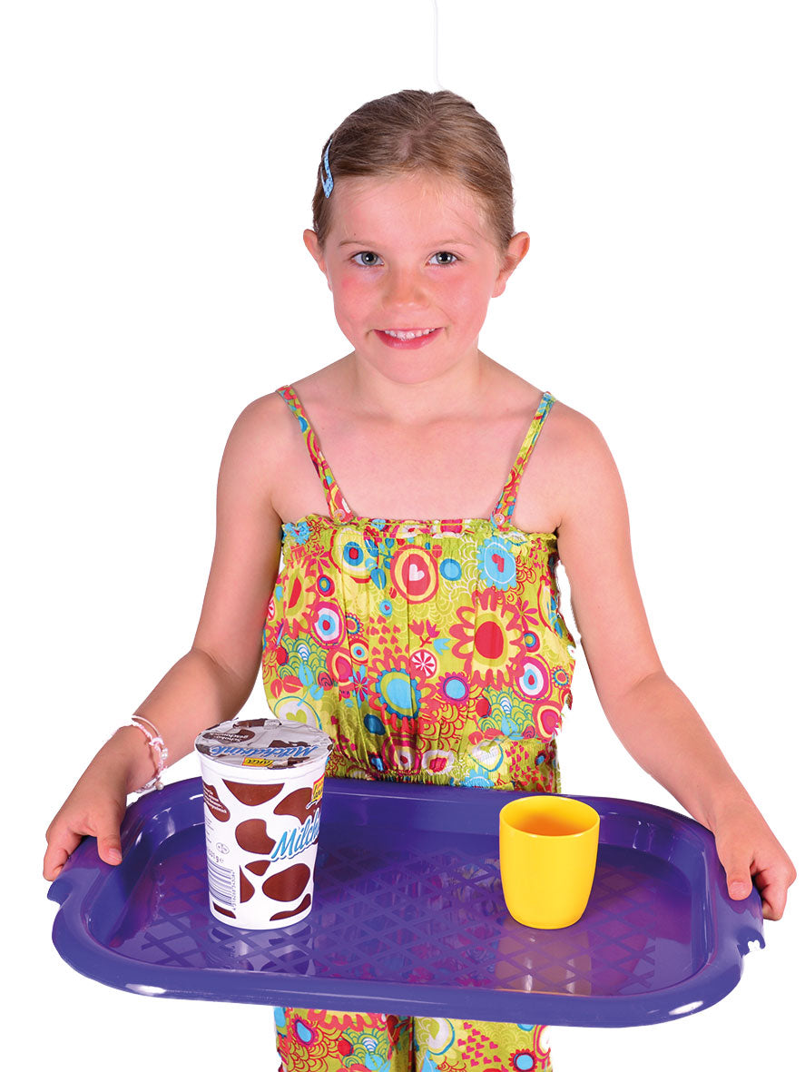 Große Tabletts in 5 tollen Farben (rot, blau, gelb, grün, lila).