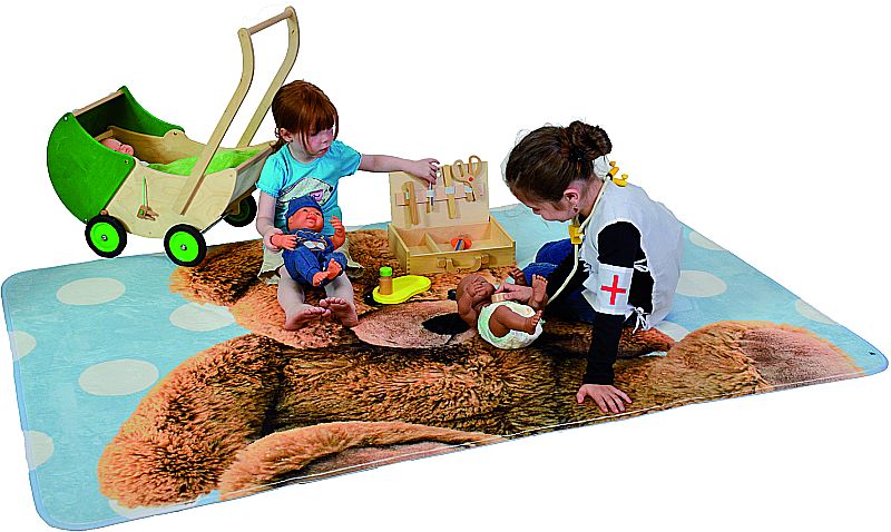 Ganz weicher kuscheliger Teppich. Der Teddy scheint auf dem Teppich zu sitzen, so echt erscheint er.