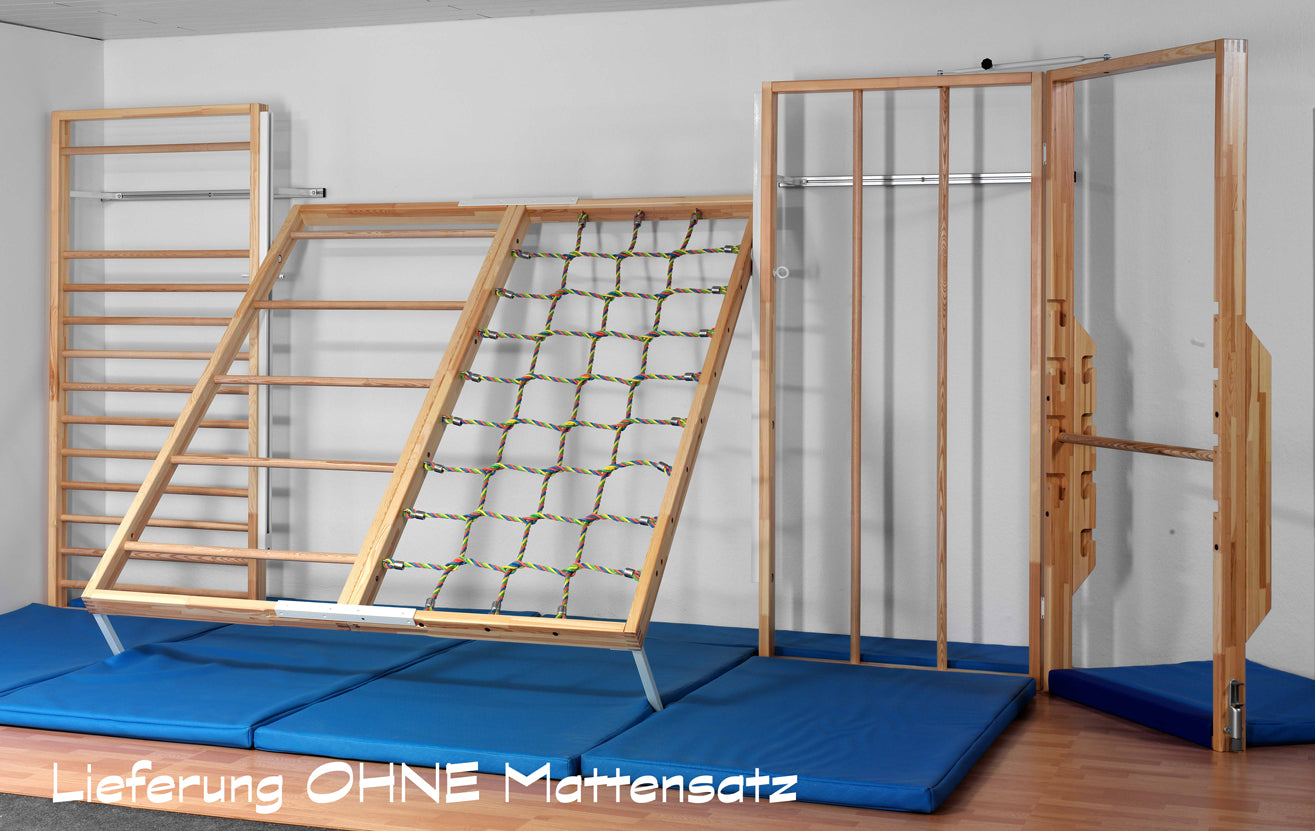 Eine große Turnwand mit verschiedenen Funktionen die Kinder ab 3 Jahren Körperertüchtigung spielerisch und spielend näherbringt. Bestehend aus