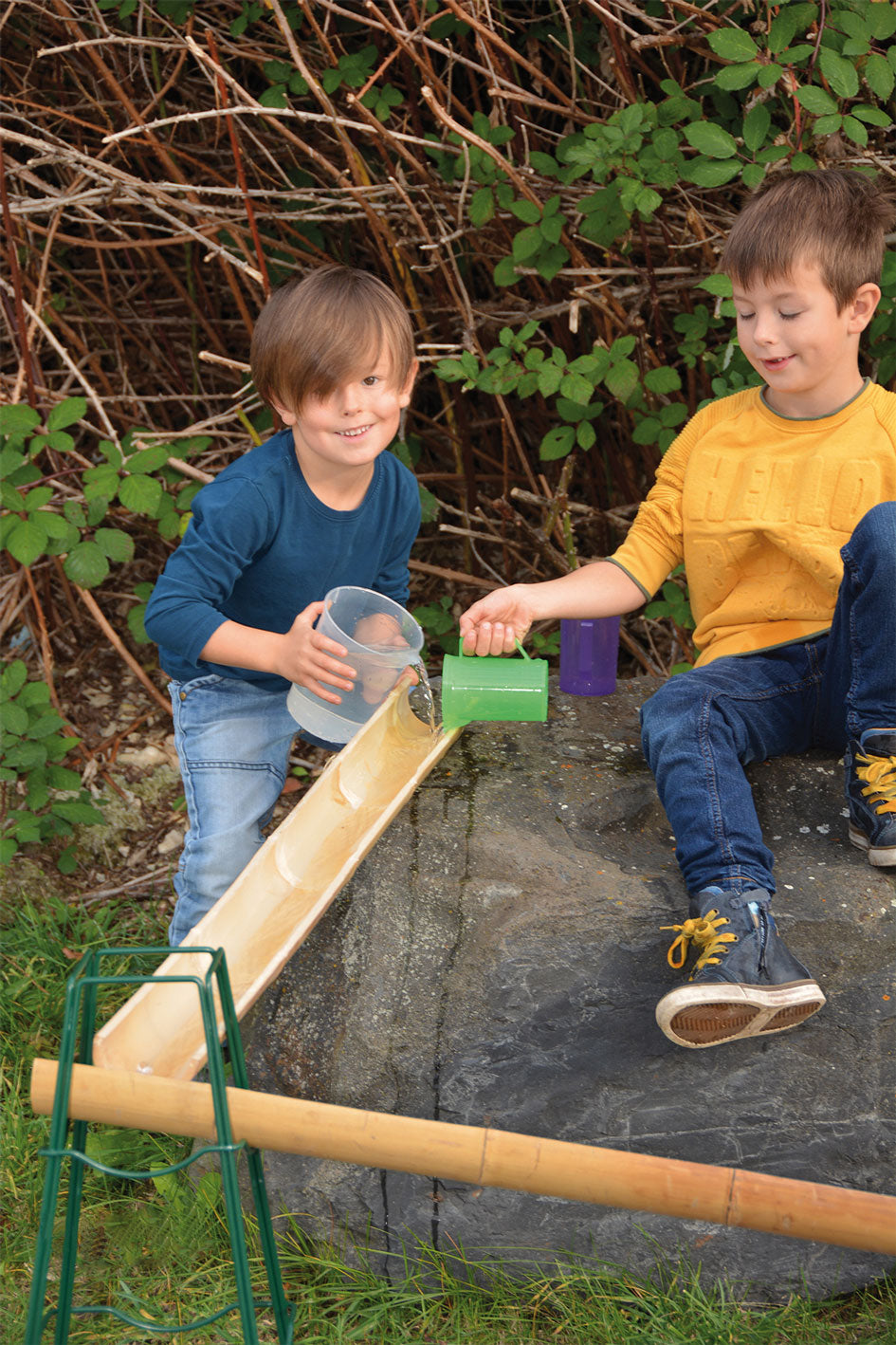 Natürliche Wasserrinnen Ruckzuck ist aus den 4 Bambus Rinnen eine Wasserbahn gebaut und dann heißt es: Wasser Marsch! Bei der Konstruktion können verschiedene Bauteile miteinander kombiniert werden, um Gefälle zu erzeugen (Wasserbahn Ständer), um Wasser umzuleiten und um das Wasser aufzufangen (Kunststoffkiste). Ob es eine lange gerade Bahn mit viel Gefälle oder eine flache Zickzack-Bahn werden soll, in der das Wasser langsam fließt, können die Kinder immer wieder neu beim Bau entscheiden. Natürlich kann die Bahn beliebig erweitert werden -