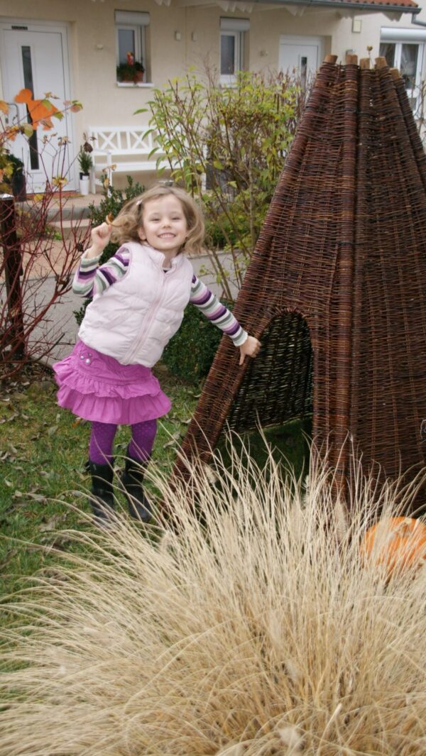 Tipp: Das Weidentipi ist für Innen und Außen geeignet, mit Filzgleitern versehen, kann es auch im Raum aufgestellt werden.