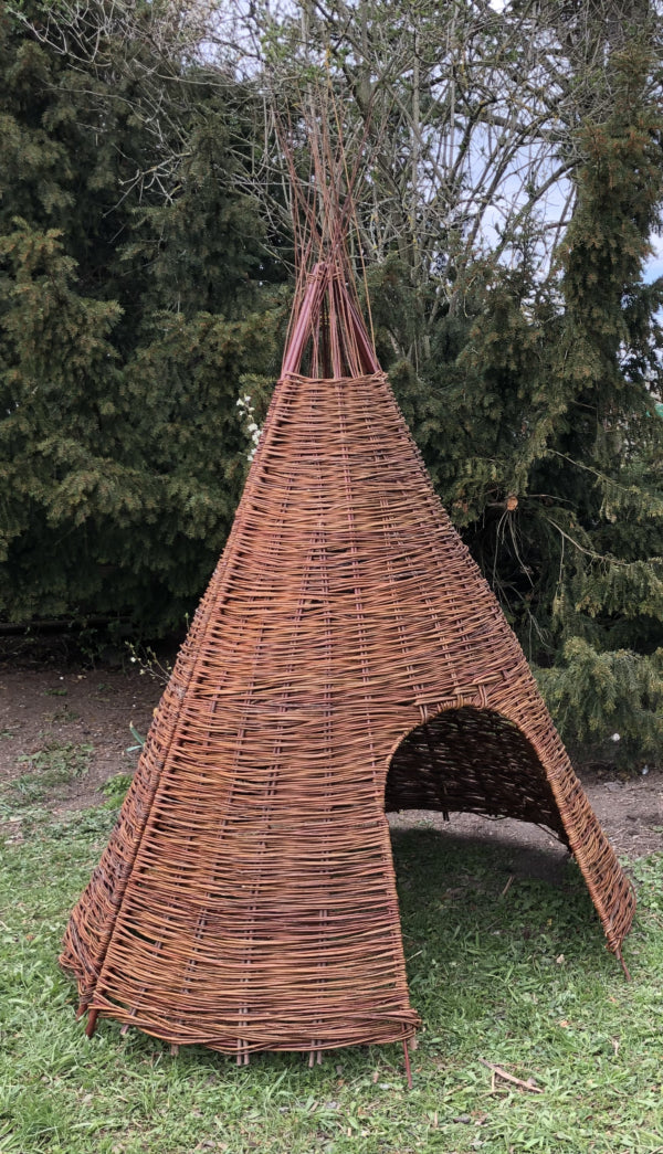 Weidentipi auf stabilen Stahlgestell mit einem Durchmesser von 130 cm und 200 cm hoch.