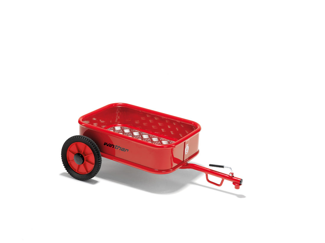 Der robuste Multifunktionsanhänger hat einen rutschfesten Aluboden und kann mühelos an alle VIKING Dreiräder und Taxis angehängt werden. Leichtes An- und Auskuppeln für zahlreiche, unterschiedliche Spielmöglichkeiten: heute wird Sand oder Spielzeug transportiert, morgen fährt ein Passagier mit. Lieferung komplett montiert. Passend für alle VIKING Modelle mit Anhängerkupplung.