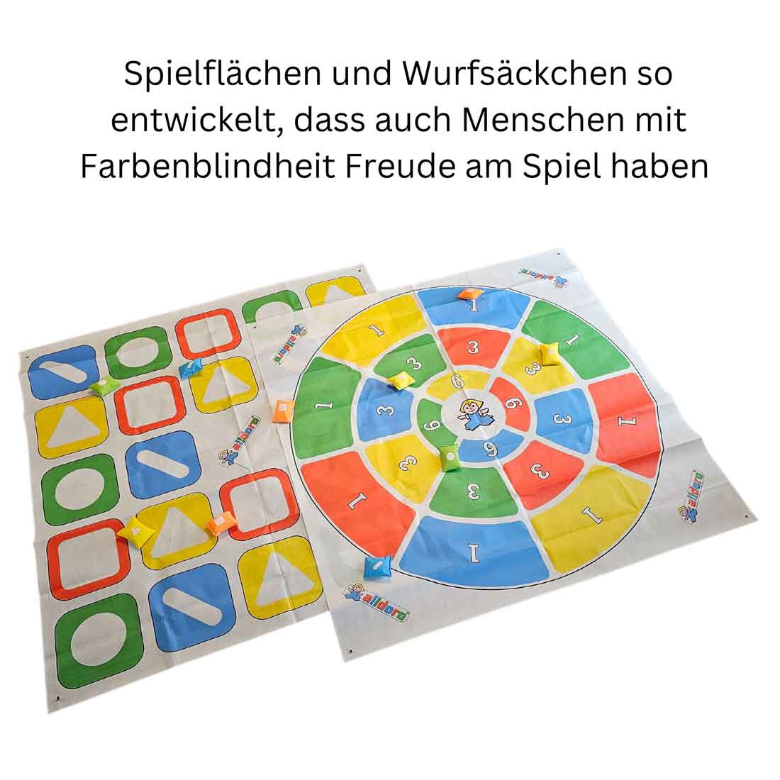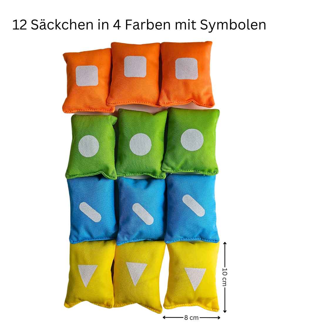 Auch für Farbenblinde geeignet, da die farbigen Säckchen zusätzlich mit Symbolen bedruckt sind.