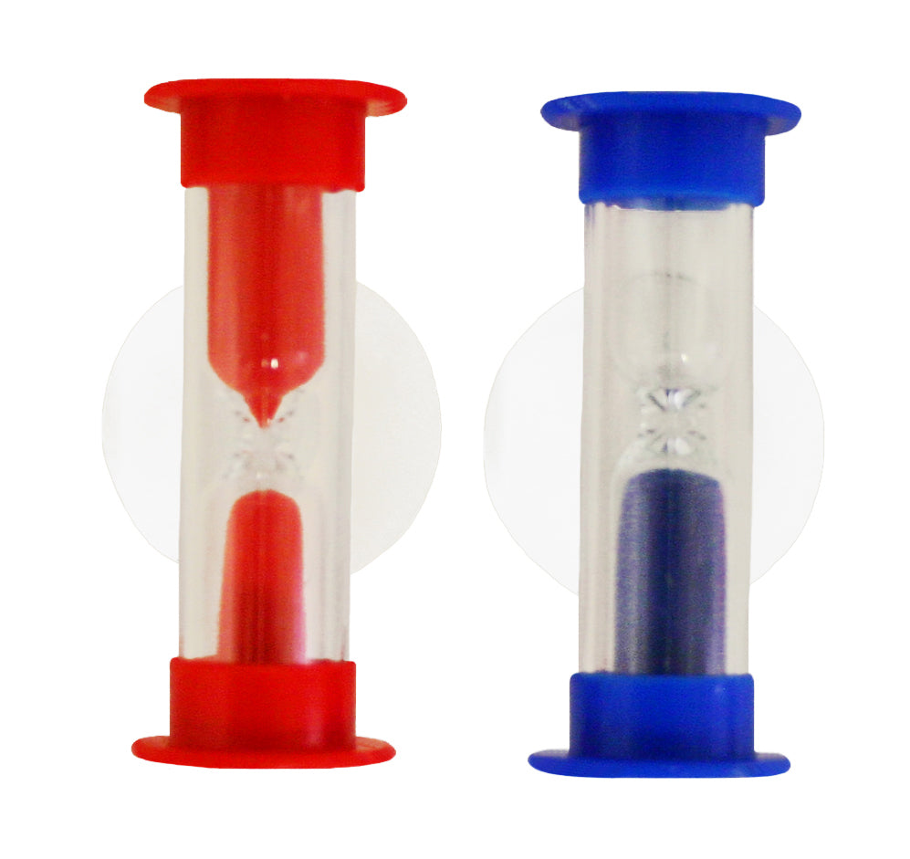 Diese kleine Zahnputzuhr saugt sich an Fliesen und anderen glatten Oberflächen fest.