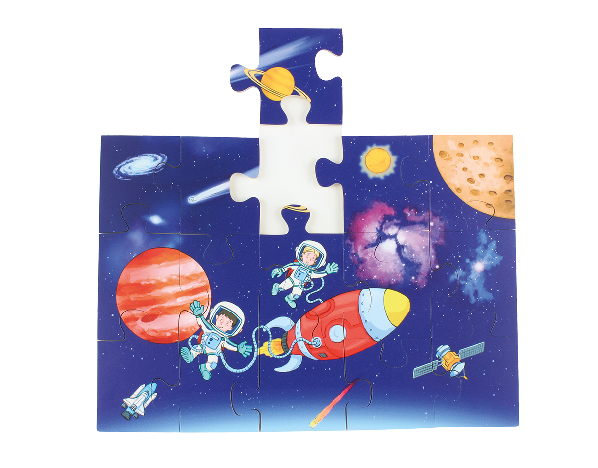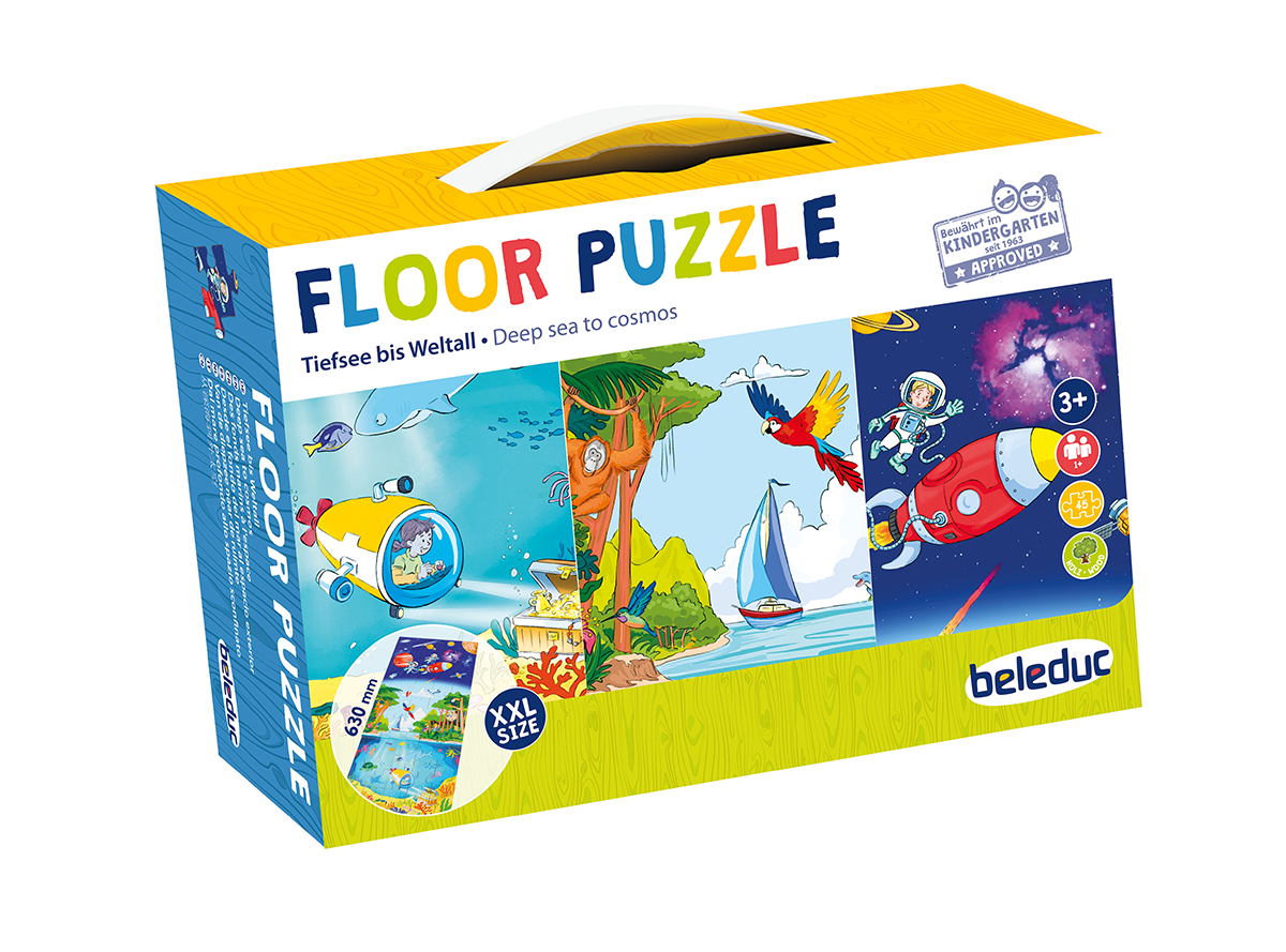 Auf diesem Puzzle gibt es viel zu entdecken. Unter Wasser, auf der Erde und über den Wolken gibt es viel zu entdecken. Dieses Puzzle kann als 3 Einzelpuzzle - Unter Wasser, Fluss und Weltraum gepuzzelt werden. Setzt man die 3 Puzzle übereinander, erhält man ein großes Bodenpuzzle.